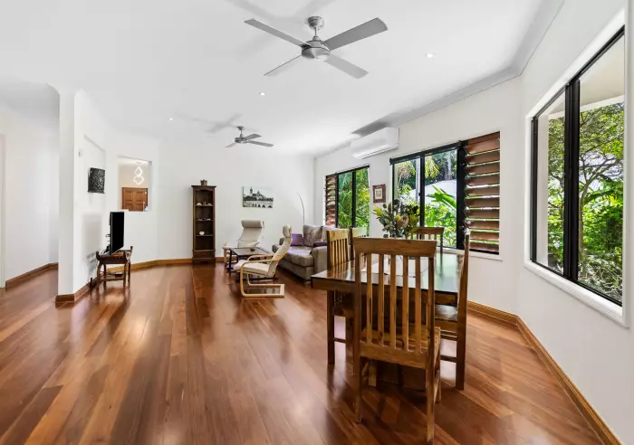 Tucked away in a quiet close and backing onto a leafy reserve, this home offers space, privacy, and relaxed family living in sought-after Park Ridge Estate. Set on a generous 922m² block with no rear neighbours, the layout includes two separate living areas with high ceilings, a well-appointed kitchen with modern appliances and plenty of storage, and an open plan design that makes everyday living and entertaining easy. Louvers to sections of the home invite natural light and breezes, while air-conditioning keeps things comfortable year-round.
