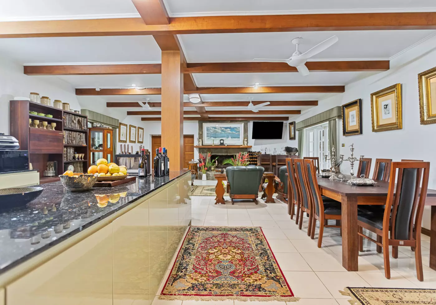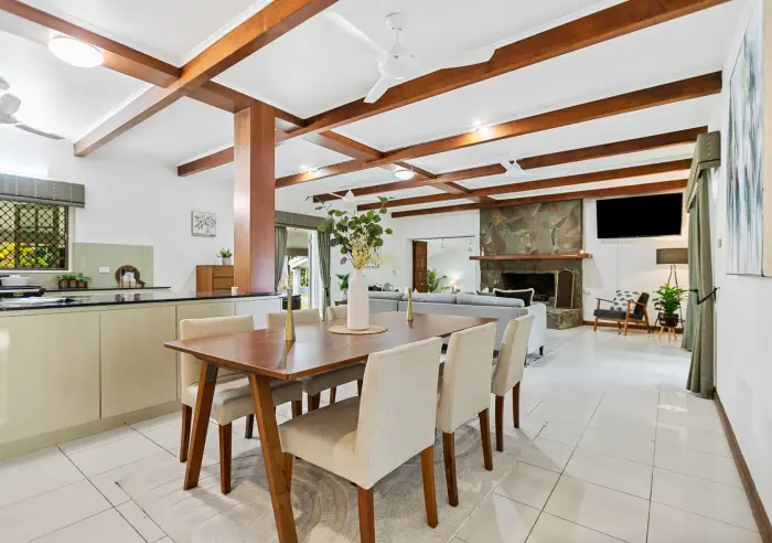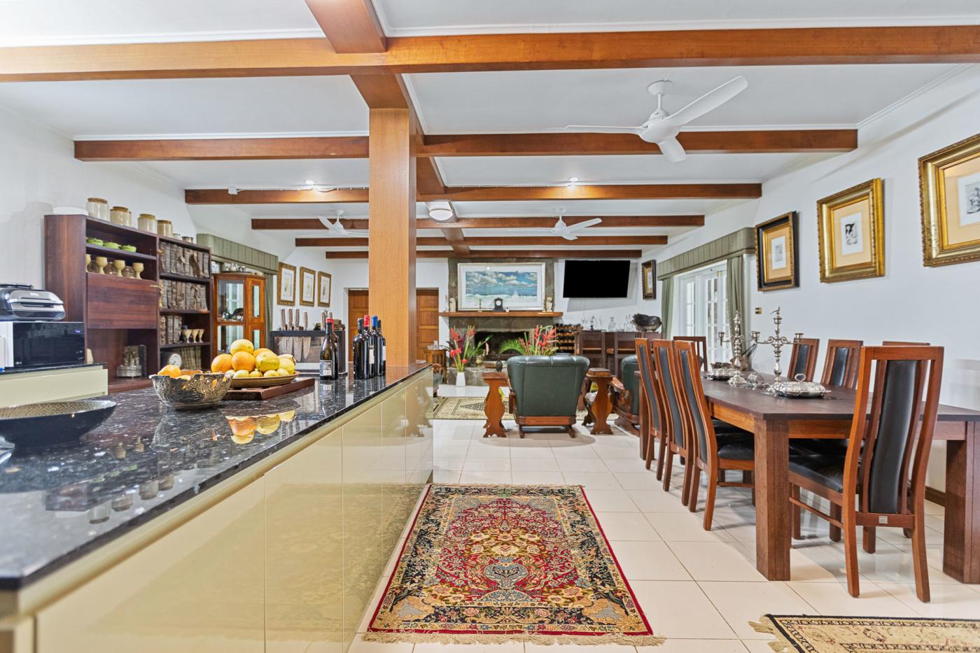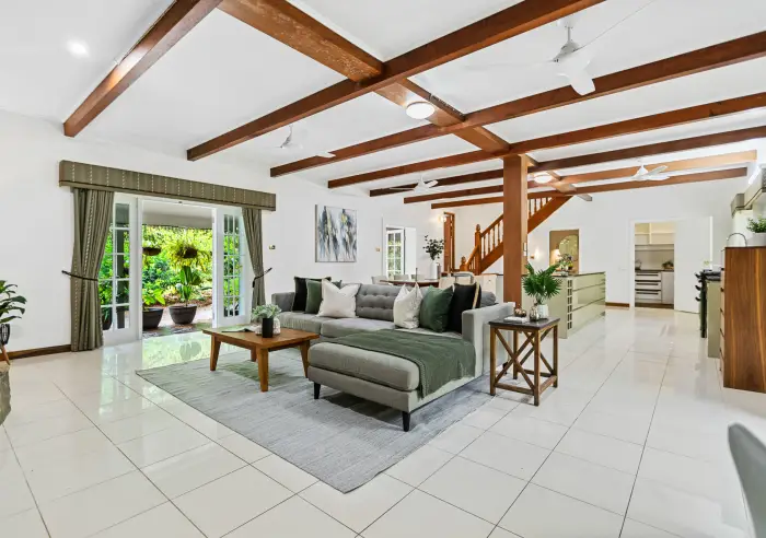 - High Ceilings featuring exposed silky oak timber beams