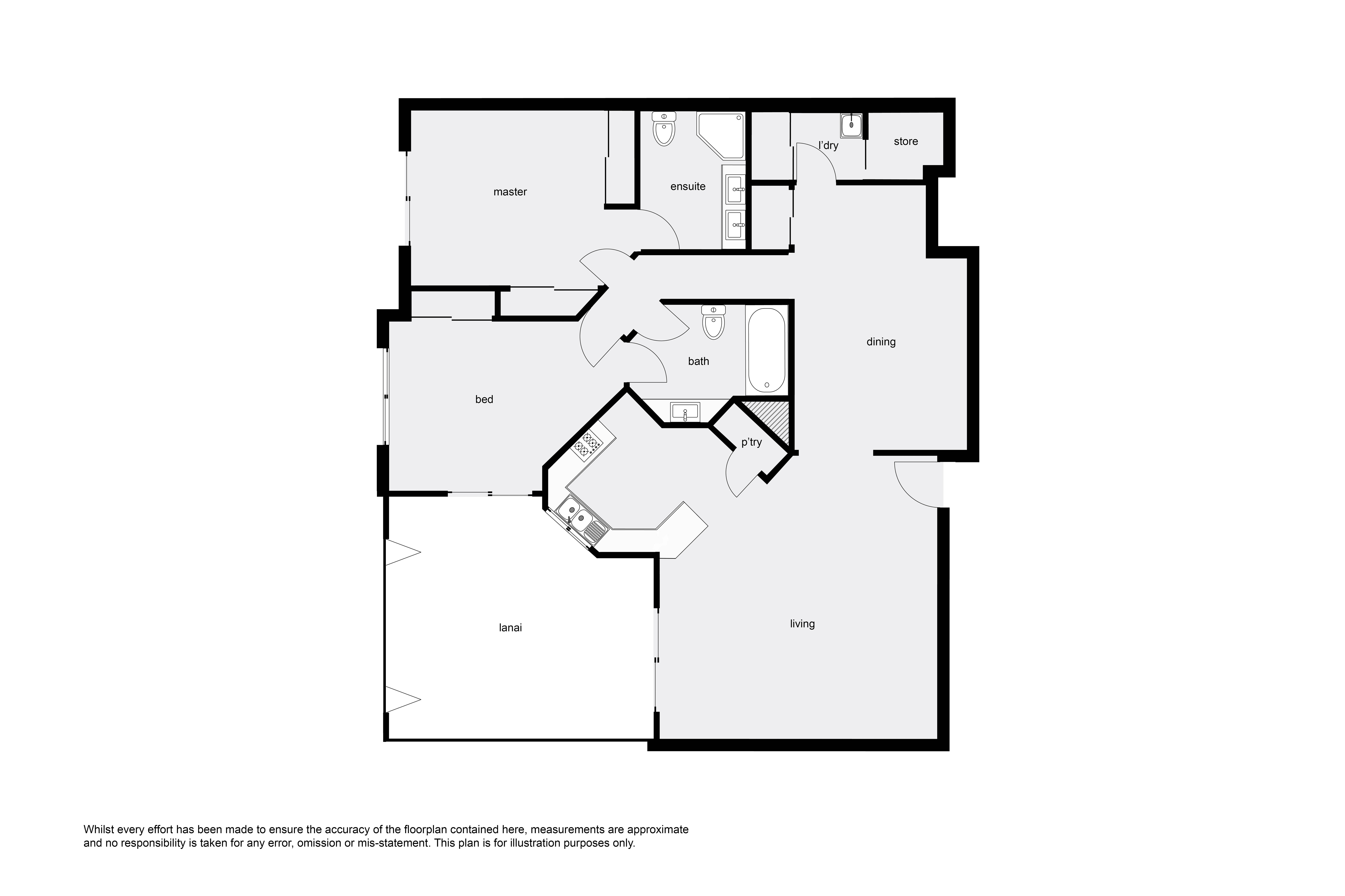 - Well appointed kitchen, complete with stone benches and gas cooktop
