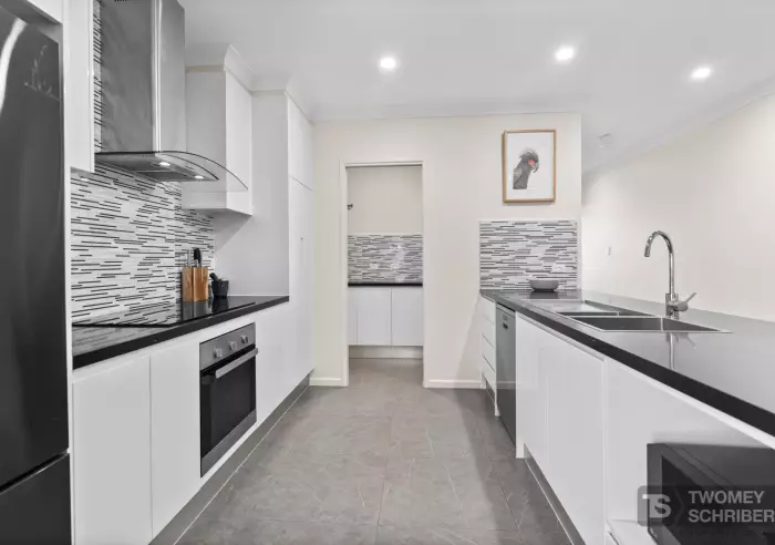 - Modern kitchen equipped with a butler's pantry, dishwasher, and large fridge space.