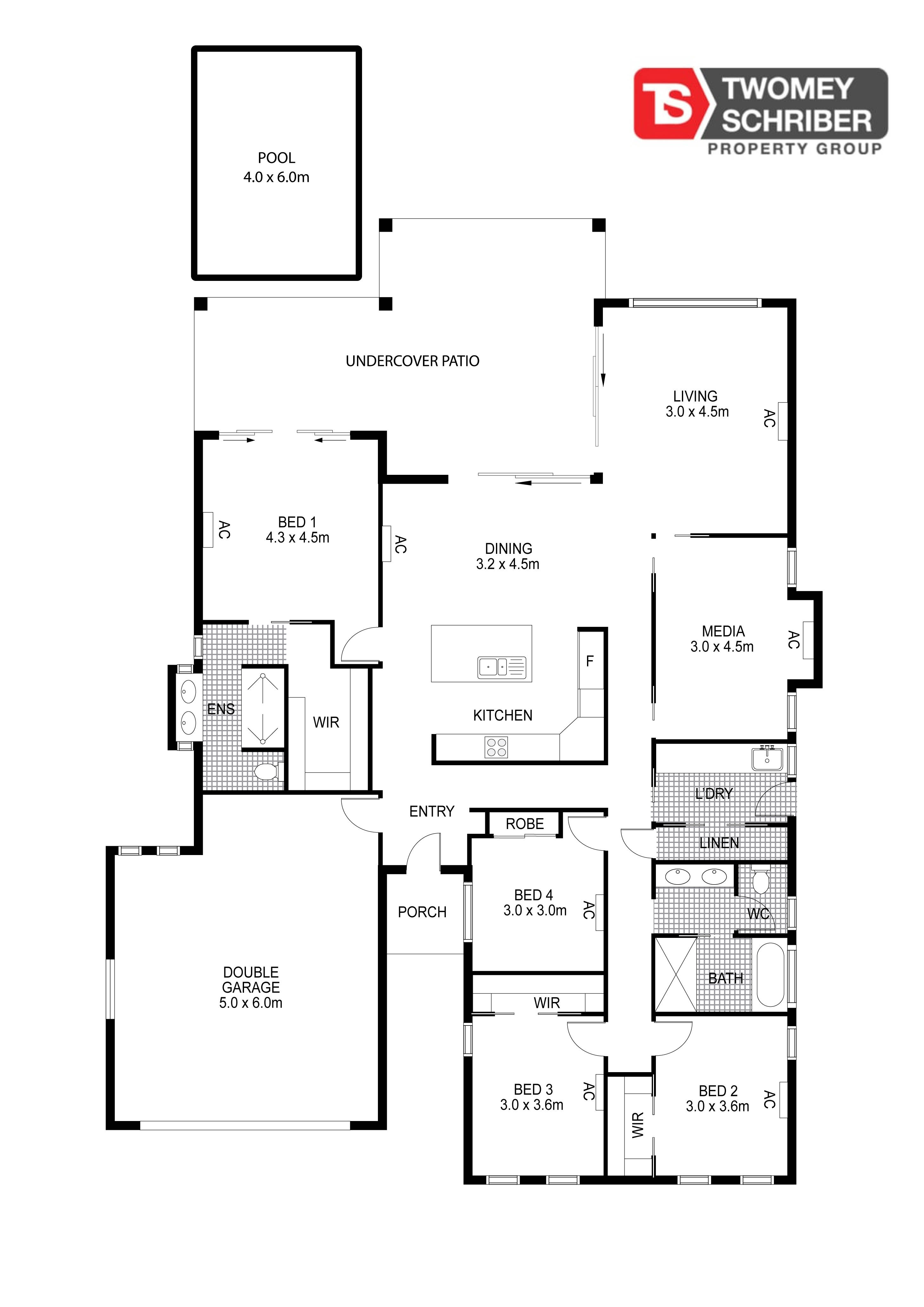 Inside, you'll find four spacious bedrooms – including a lavish master suite with a double vanity, double showers and a large walk-in robe – plus a separate enclosed media room with surround sound speakers.