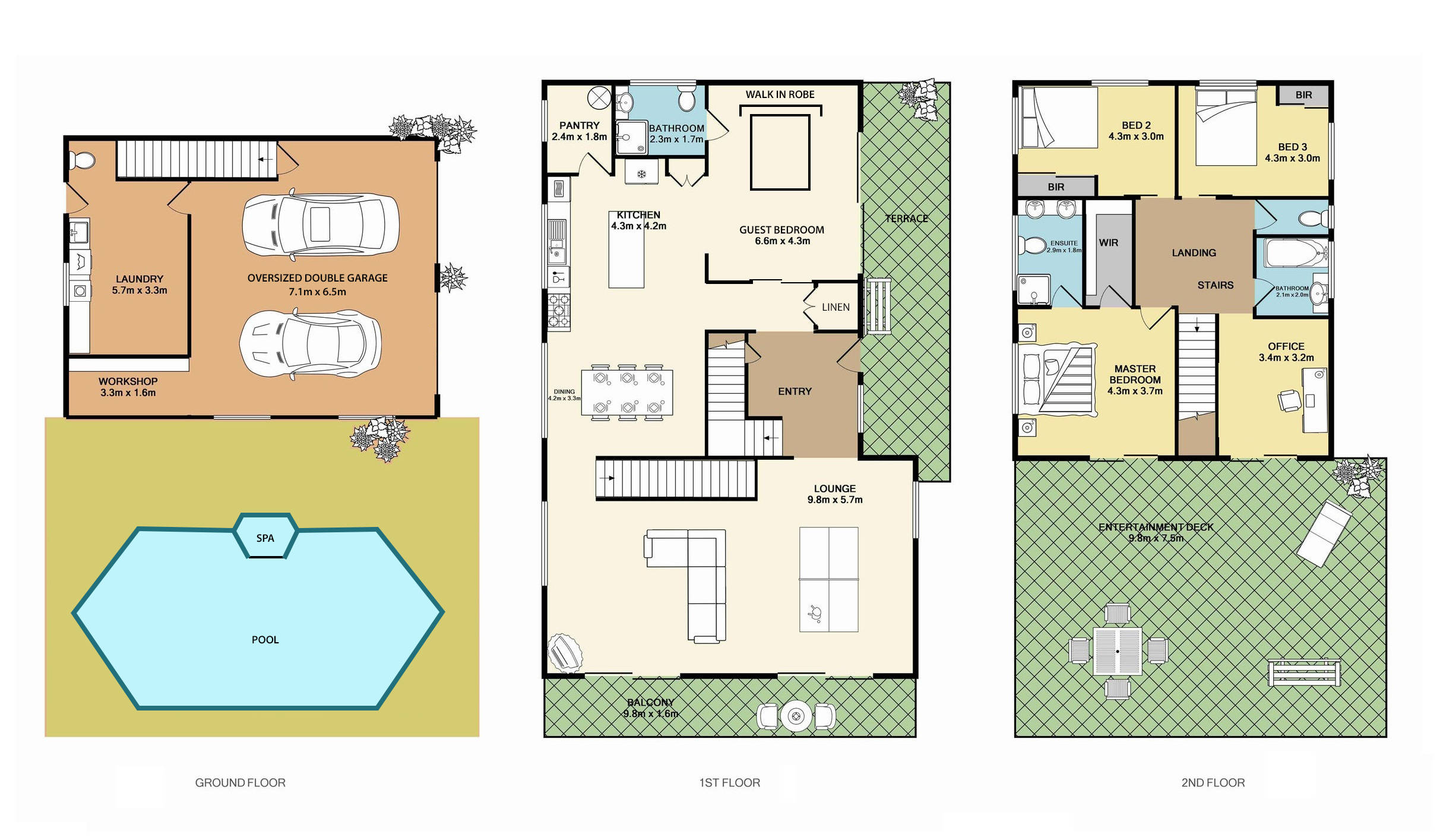 Deck in-Ground Pool Balcony Elevated Outdoor Entertaining Solar Power System Spa Area Views Pool Study