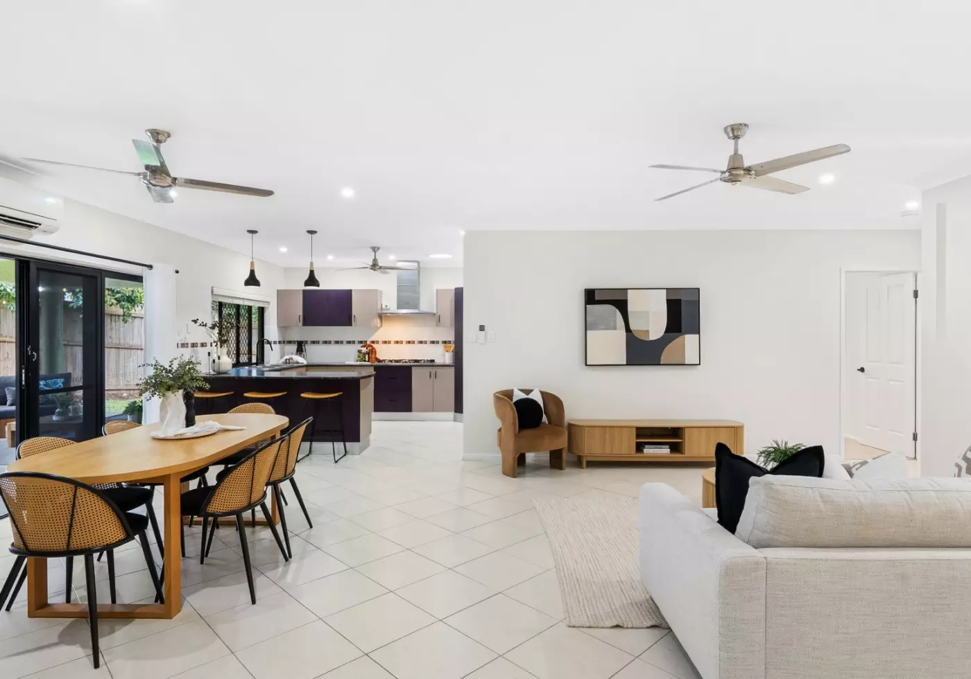 - Extra-large undercover outdoor living/entertaining space with built in fans and lights coming complete with pristine area views.