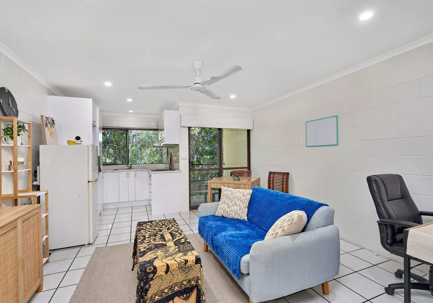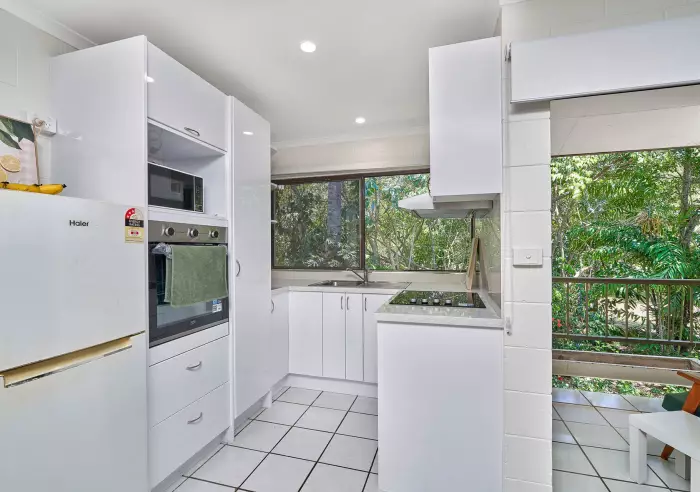 Positioned on the 1st floor, the property enjoys peaceful nature and park views from the kitchen, lounge, and balcony. Inside, the layout is practical and low-maintenance, featuring an open lounge/dining/kitchen zone, a separate bedroom, and a tidy combined bathroom/laundry. Comfort and security are ensured with split-system air-conditioning, ceiling fans, and security screens throughout. Presentation is neat, clean, and ready to rent immediately.