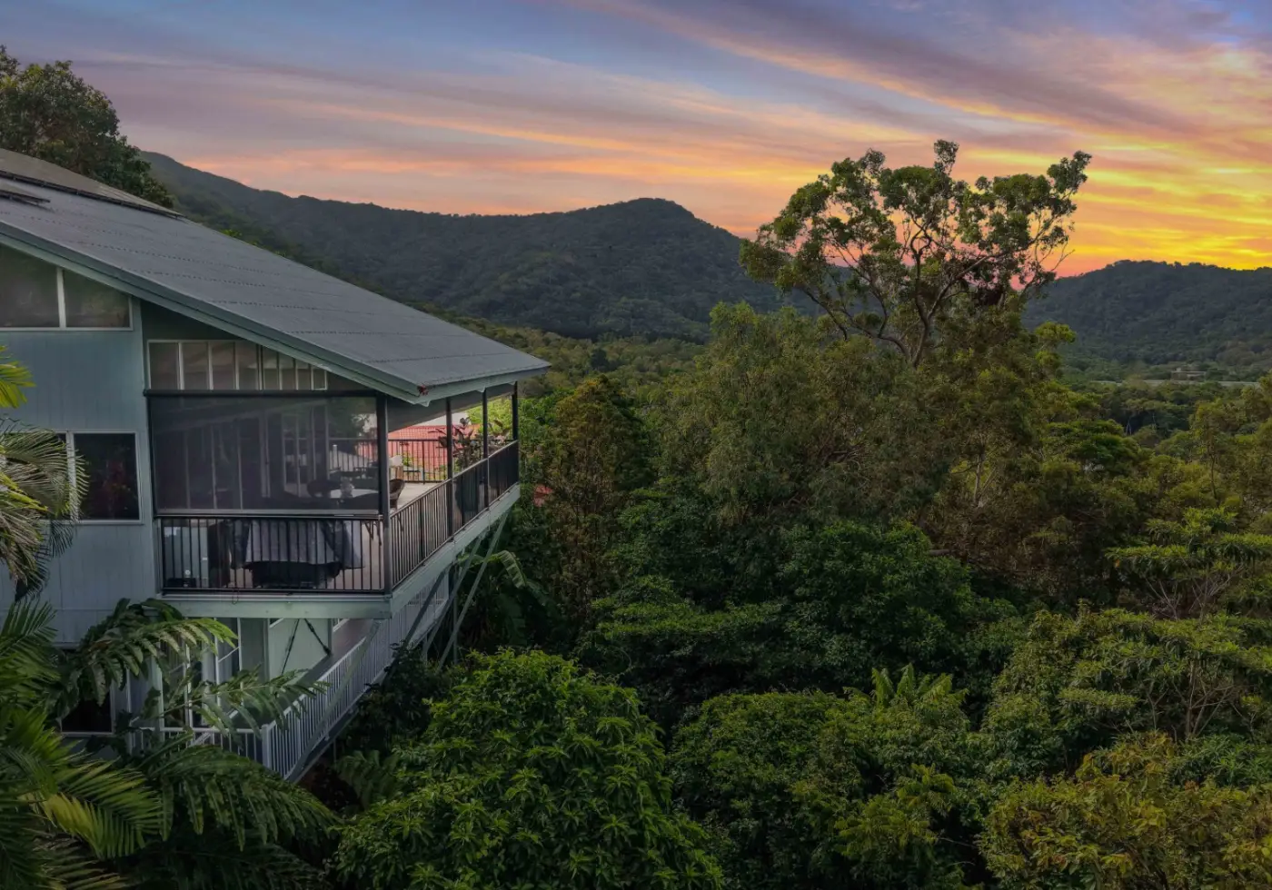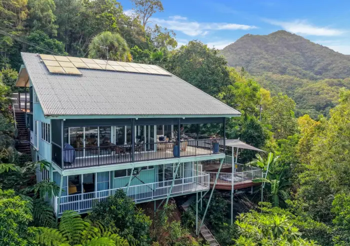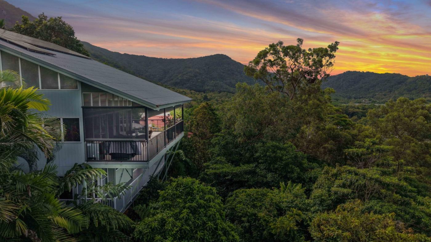 Perched approximately 100m above sea level, this architect-designed, steel-framed tropical residence was created to capture breathtaking panoramic views stretching from the Coral Sea across to the surrounding mountain ranges.