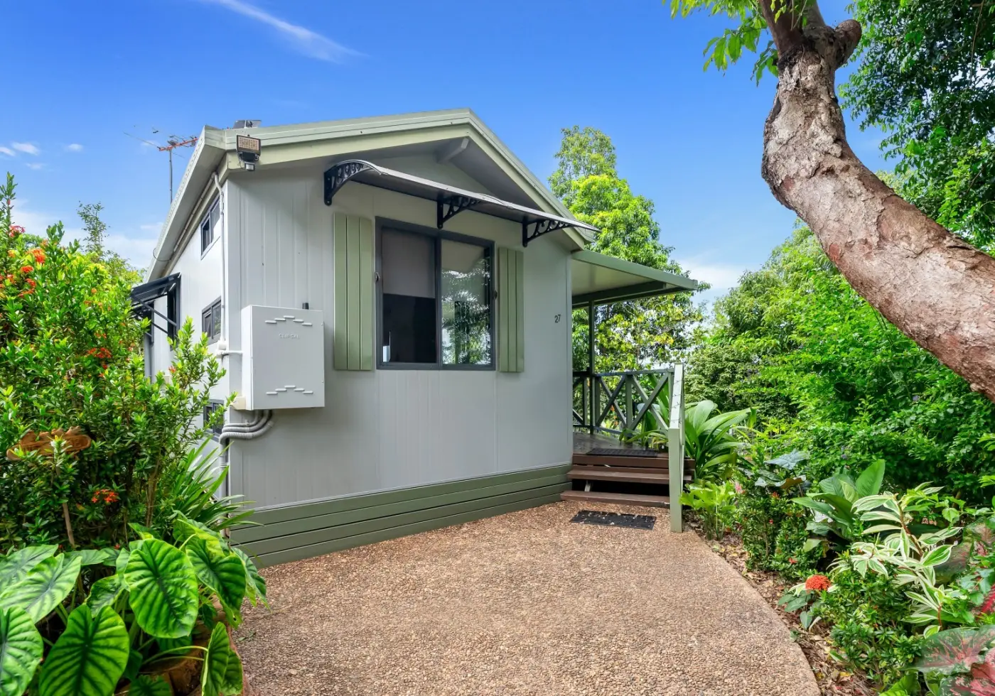 Tucked away in a peaceful, elevated position, this charming cabin-style residence at 27 Gavin Street, Smithfield offers a unique blend of simplicity, comfort, and lifestyle appeal. Set on a generous 619sqm block and filled with natural light, the home features warm timber-look vinyl flooring, high ceilings, and a relaxed open feel that perfectly complements its tranquil surroundings.